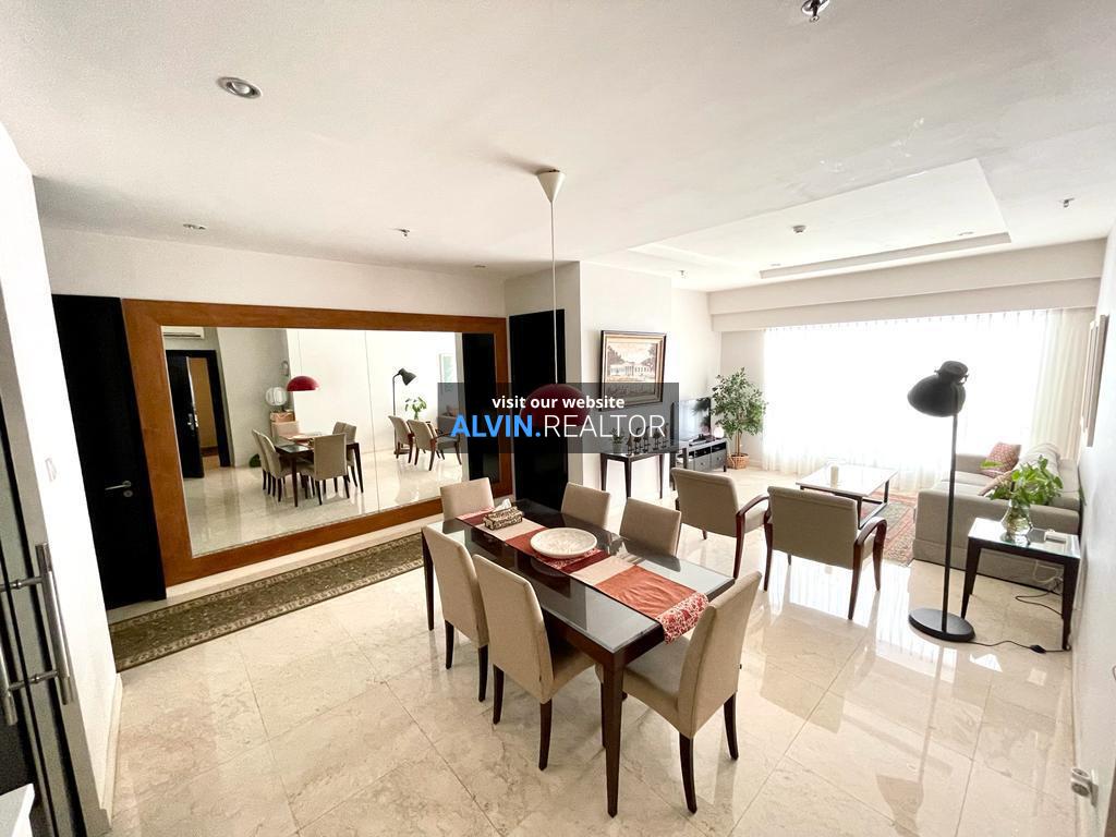 Dijual Apartemen Somerset Berlian Tower South, luas 152 m2, terdiri dari 3 kamar tidur, 2 kamar mandi, maid room, kondisi fully furnished, posisi high floor.