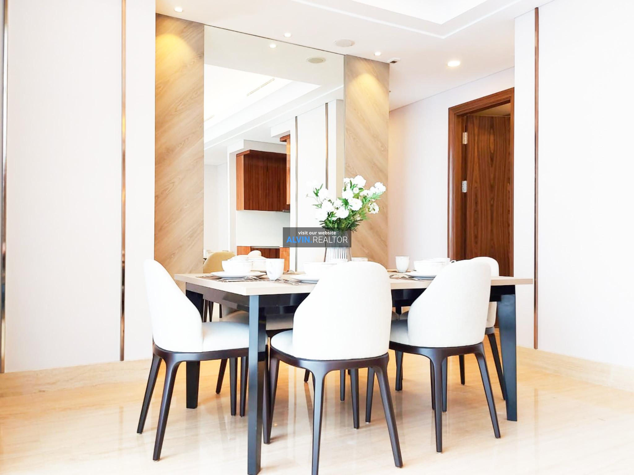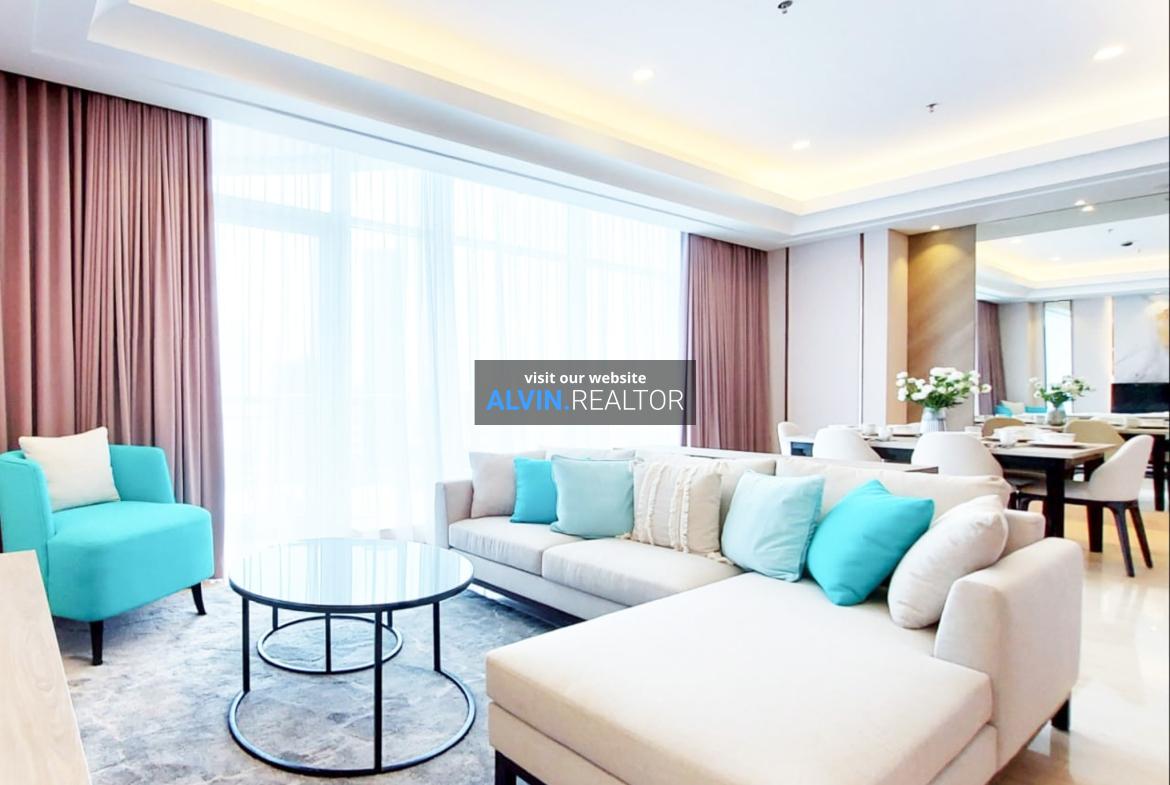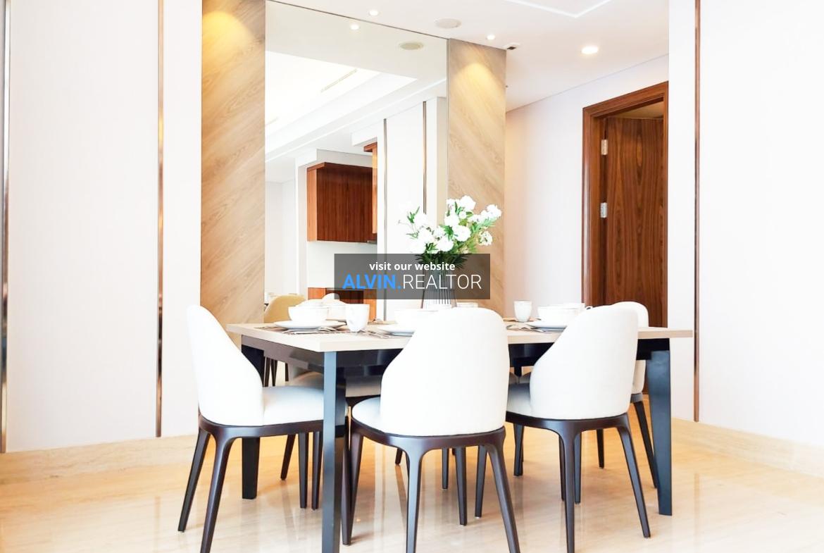 Disewa Apartemen South Hills, luas 143 m2, terdiri dari 3 kamar tidur, 2 kamar mandi, maid room, kondisi fully furnished, posisi high floor.