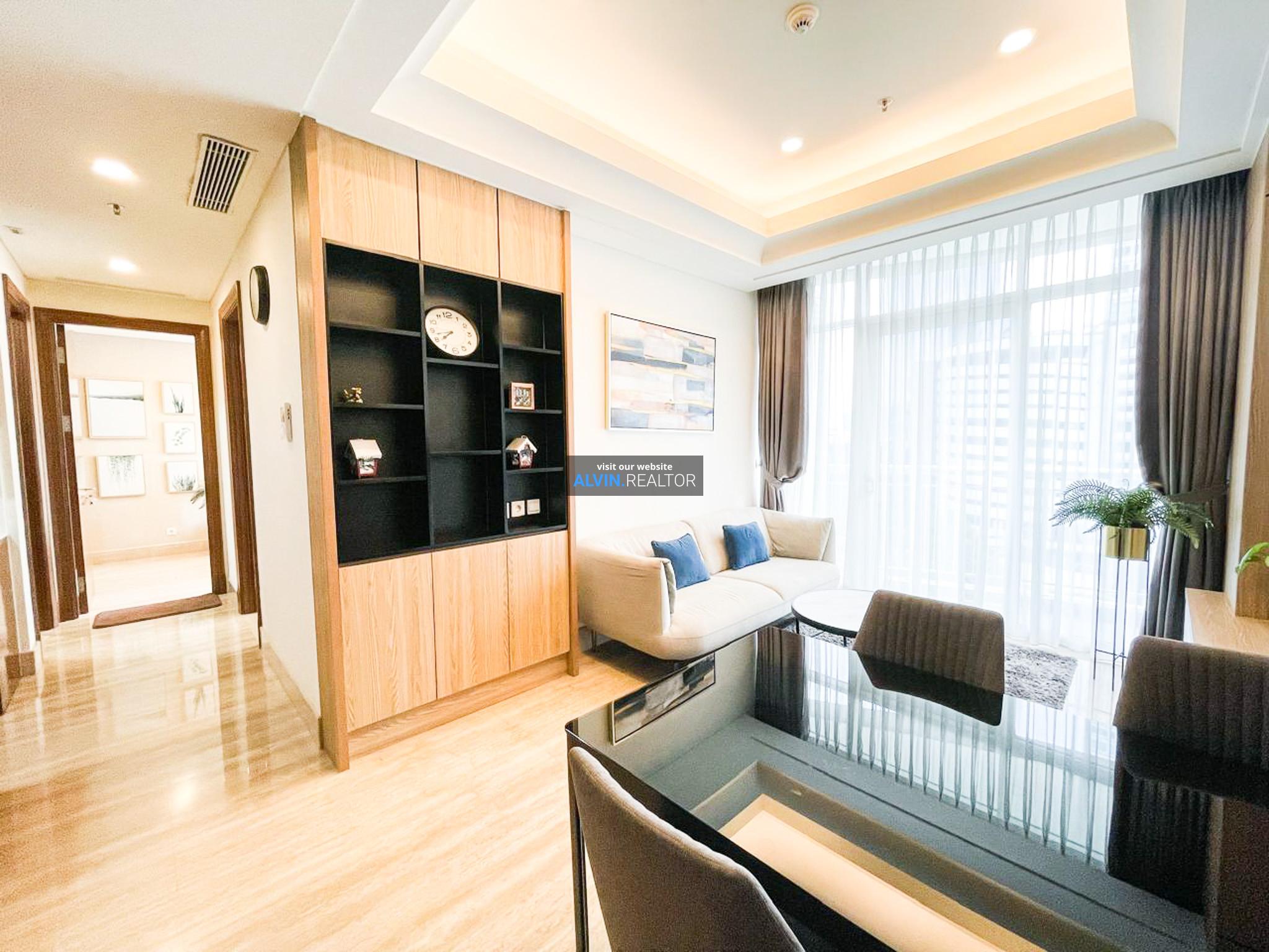 Dijual Apartemen South Hills, luas 87 m2, terdiri dari 2 kamar tidur, 2 kamar mandi, kondisi fully furnished, posisi low floor.