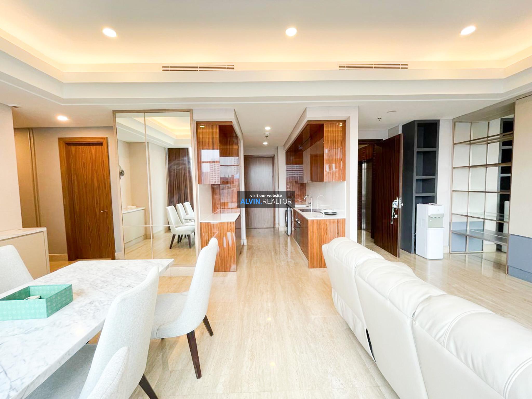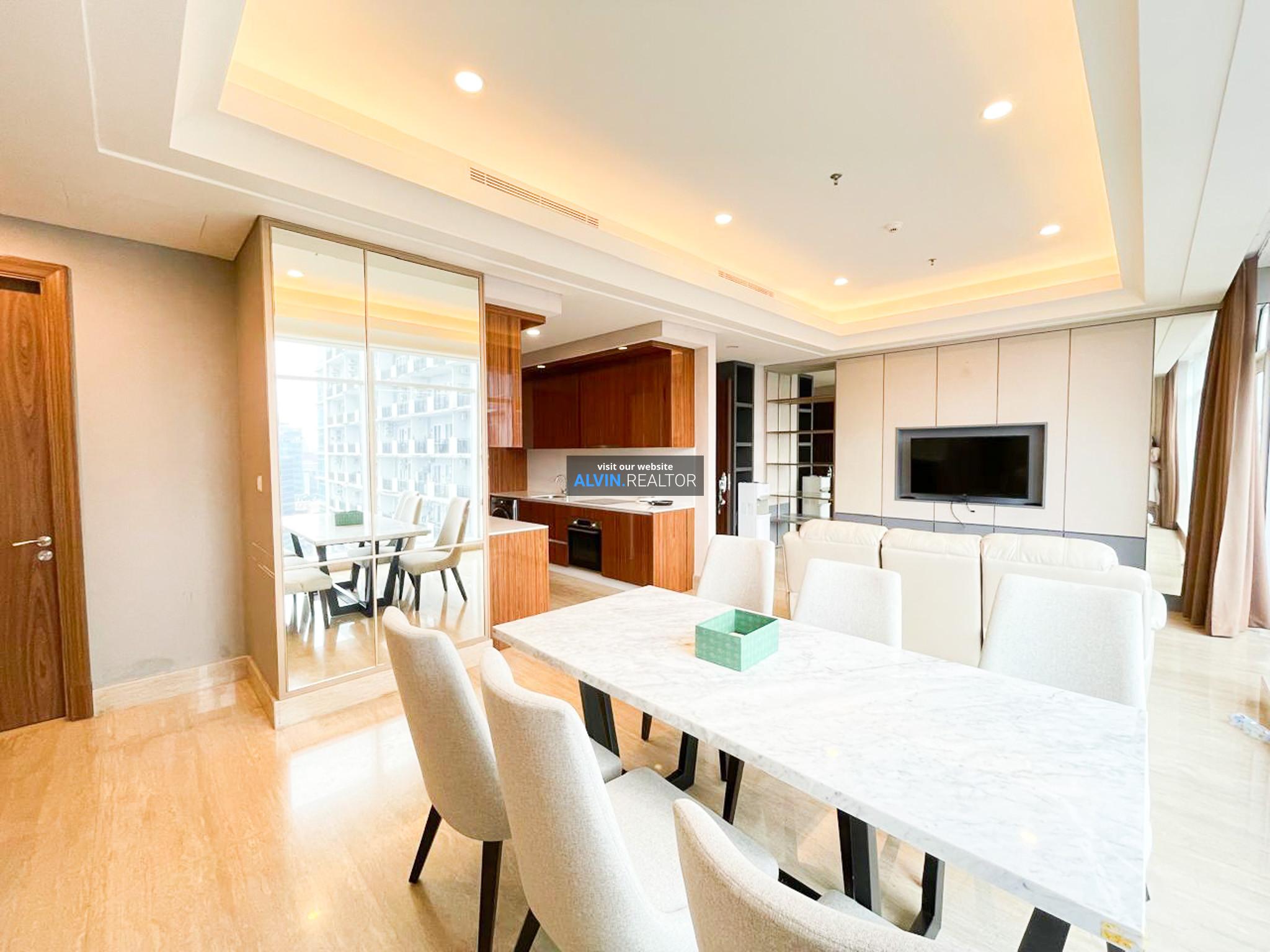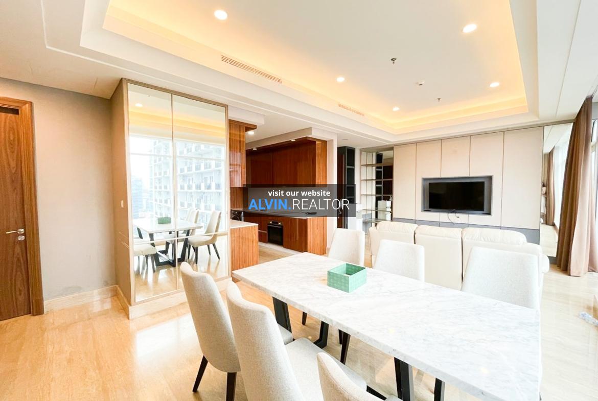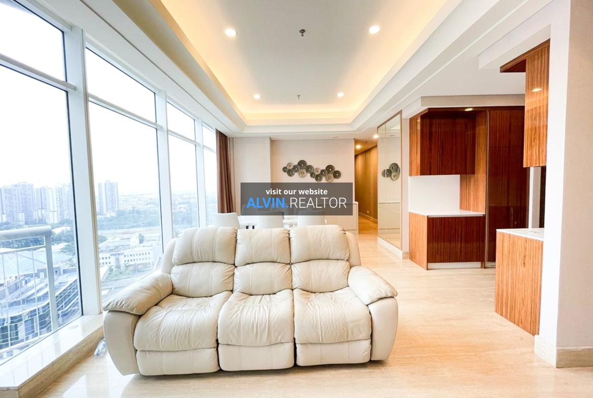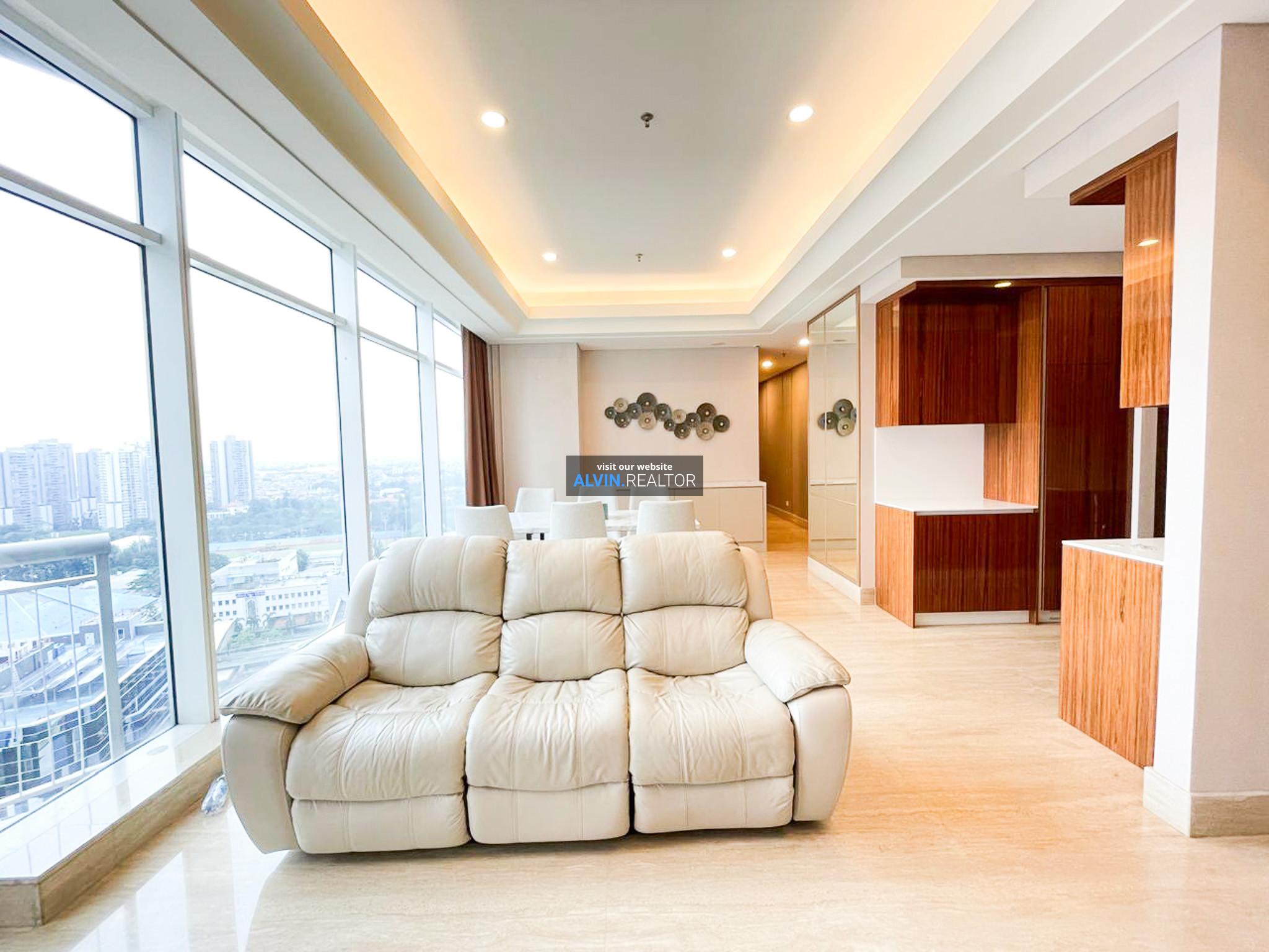 Disewa Apartemen South Hills, luas 143 m2, terdiri dari 3 kamar tidur, 2 kamar mandi, maid room, kondisi fully furnished, posisi middle floor.