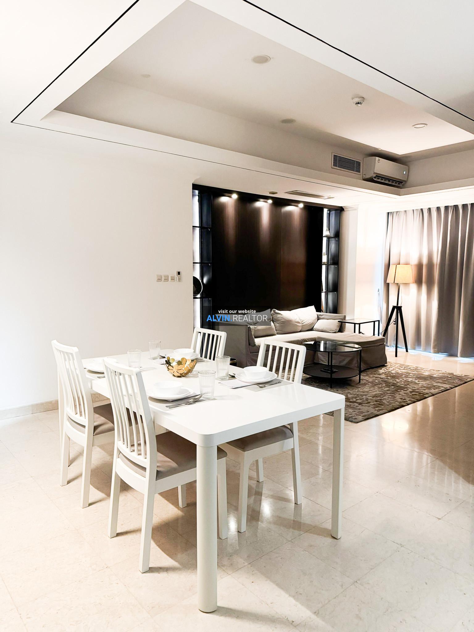 Disewa Apartemen Sudirman Mansion, luas 145 m2, terdiri dari 3 kamar tidur, 2 kamar mandi, maid room, kondisi fully furnished, posisi high floor.