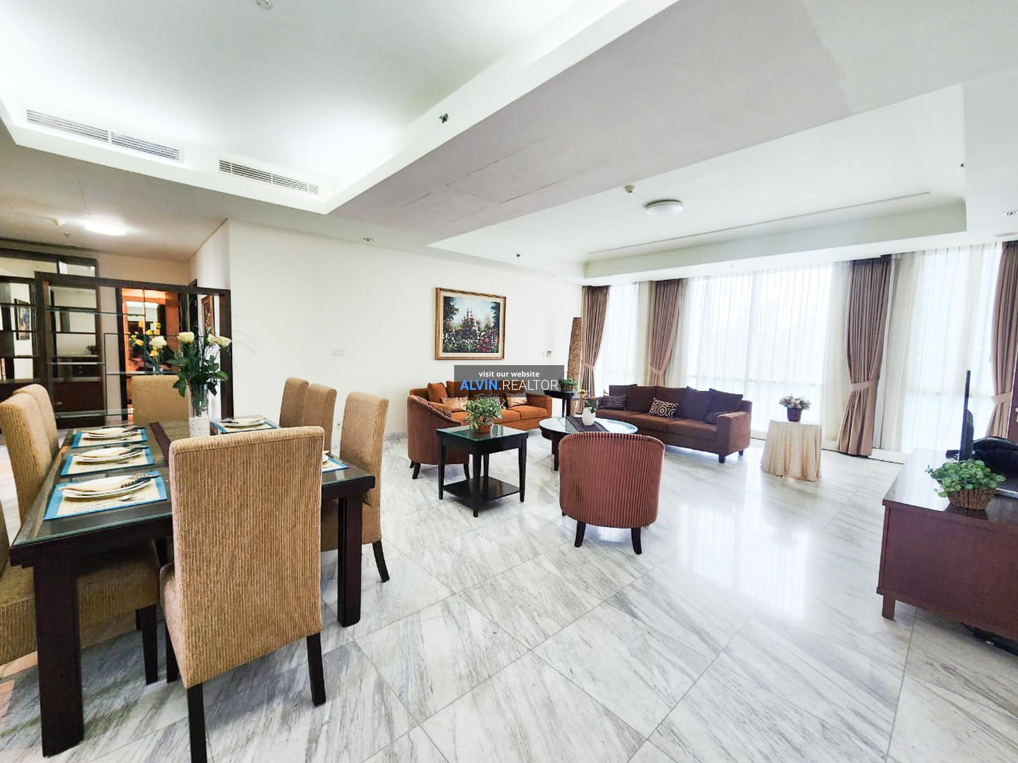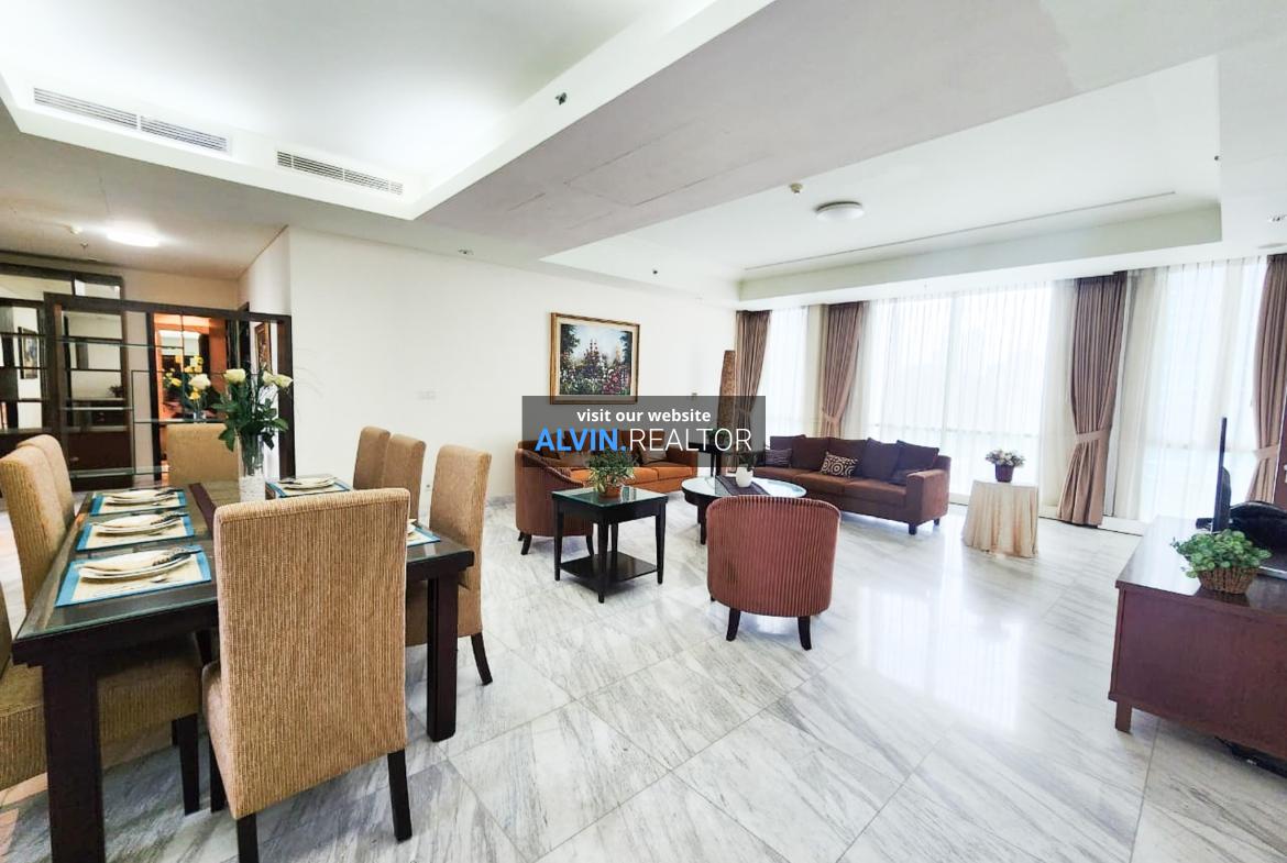 Disewa Apartemen The Peak Sudirman Tower Regis, luas 232 m2, terdiri dari 3 kamar tidur, 3 kamar mandi, maid room, kondisi fully furnished, posisi low floor.